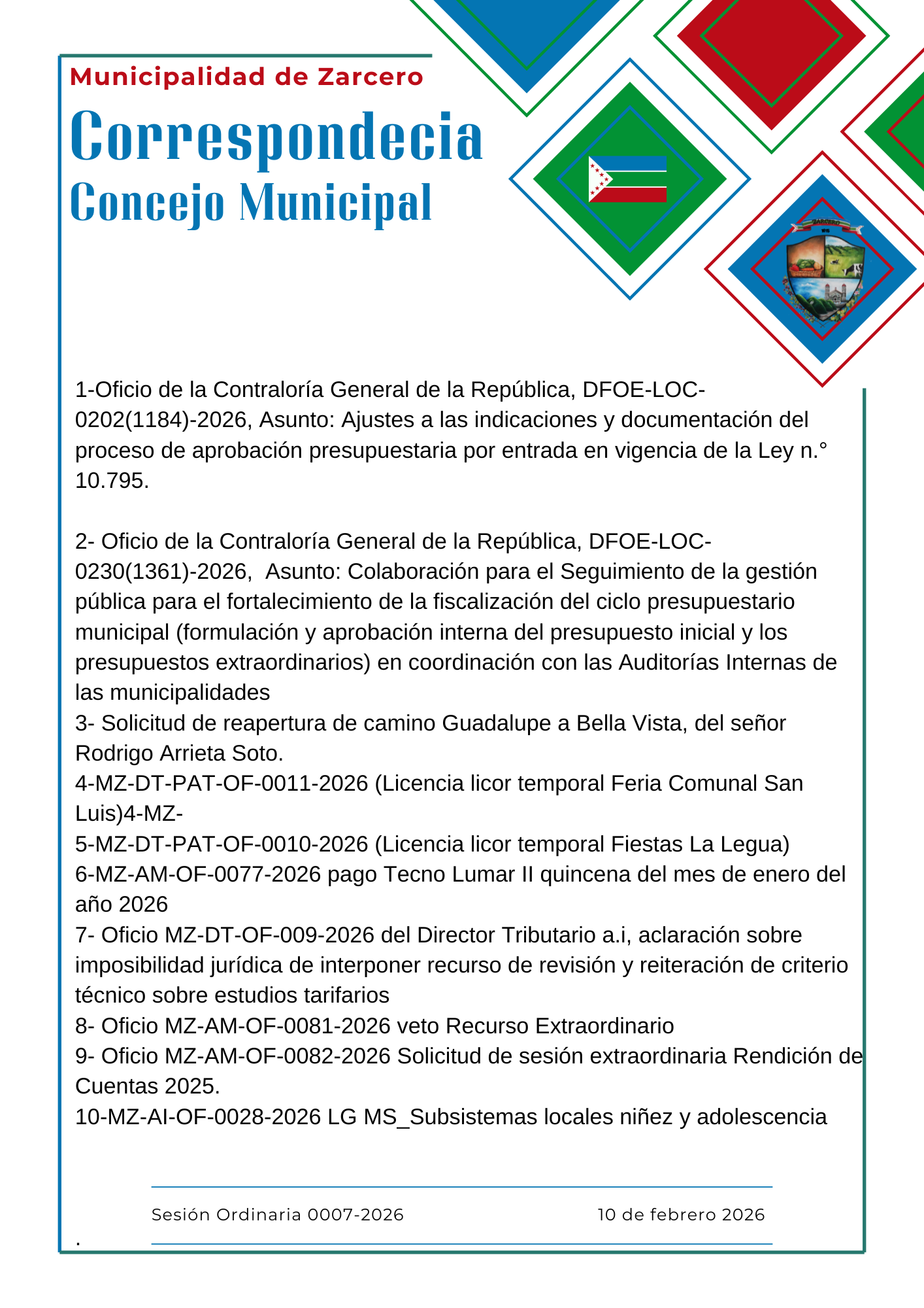 - Agenda Municipal Ordinaria 0062-2025 02122025